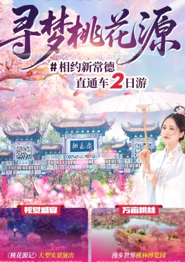 早指定地点集合乘车前往湖南常德桃花源,即刻开启寻梦桃花源的心灵之旅!