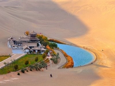 这对大漠戈壁中的孪生姐妹,千百年来以山泉共处、沙水共生的沙漠奇观著称于世,有“月泉晓澈”、“塞外一绝”的美誉。游人至此,都会驰怀神往,遐思万千,确有“鸣沙山怡性,月牙泉洗心”之感。